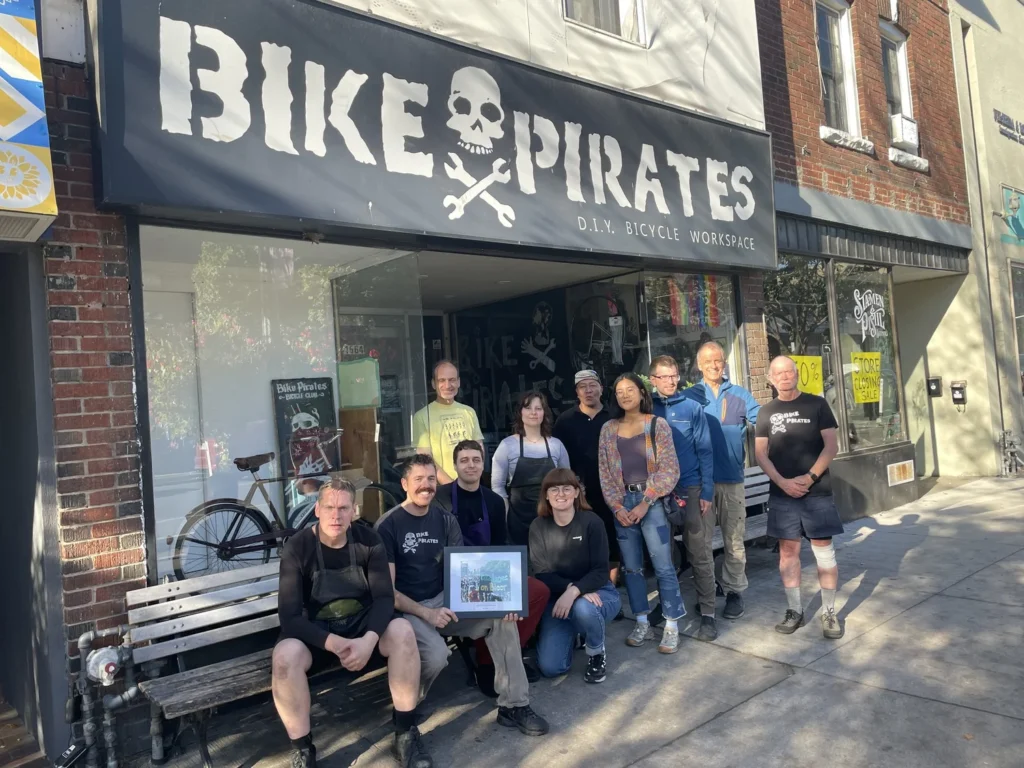 In August 2008, Bike Pirates moved to 1292 Bloor Street West, and also became an official non-profit organization. In November 2008, we added our weekly “trans & women” Sunday hours which have been running successfully ever since, as part of our mandate to make cycling more accessible. After 2008 we more than doubled our hours, selling hundreds of refurbished bicycles, and in 2015 we moved to 1416 Queen Street West in Parkdale. In early 2020 we moved again to our current home at 1564 Bloor Street West, but had to reduce our operations due to the pandemic.